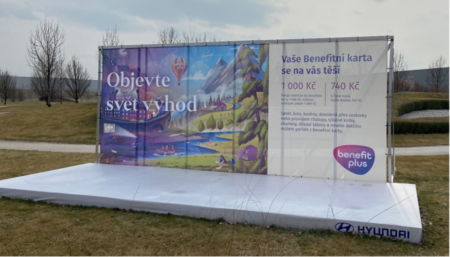 Pro společnost Hyundai jsme také vytvořili komunikační kampaň, která zahrnovala letáky, venkovní banner či balónky Benefit Plus.