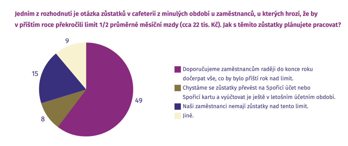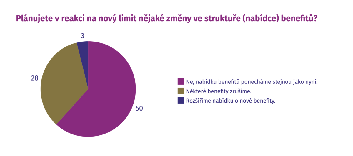 Z poskytnutých odpovědí je patrné, že se většina firem stále snaží vyrovnat s novými výzvami, hledá odpovědi a nemá v tuto chvíli žádné zázračné doporučení pro ostatní firmy. Většina respondentů naopak vyjádřila nejistotu a potřebu dalších konzultací a analýz k adaptaci svých benefitních programů na nové podmínky.